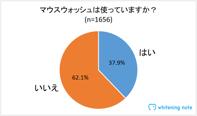 マウスウォッシュを使っていると回答した方は、全体の37.9%となりました。