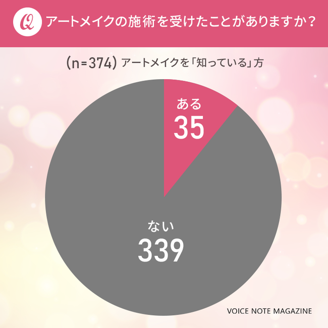 アートメイクを「知っている」と回答した374人中35人(9.4%)の方が、「ある」と回答しました。
