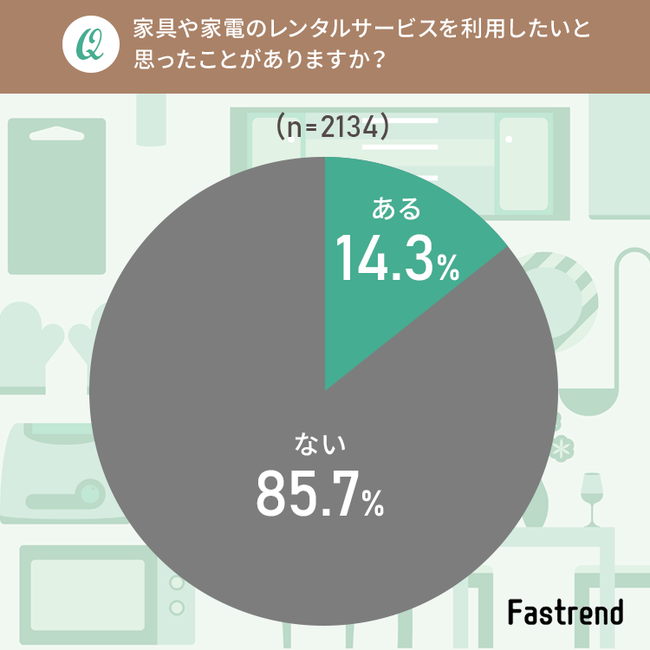 まずは、家具や家電のレンタルサービスを利用したことがあるかについて聞きました。