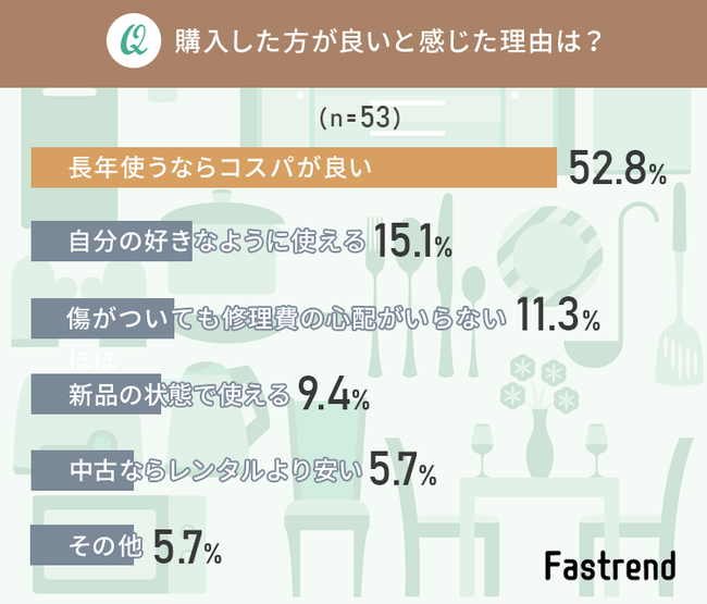 最も多かったのは、53人中28人(52.8%)の「長年使うならコスパが良い」でした!