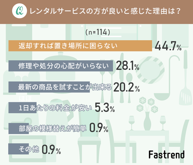 ファストレンド(運営会社:株式会社NEXER)は、「家具や家電のレンタル」に関するアンケートを実施し、結果をサイト内にて公開したので紹介します。