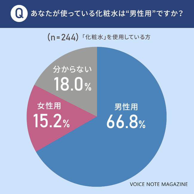 66.8%と多くの方は「男性用」の化粧水を使用しているようです。