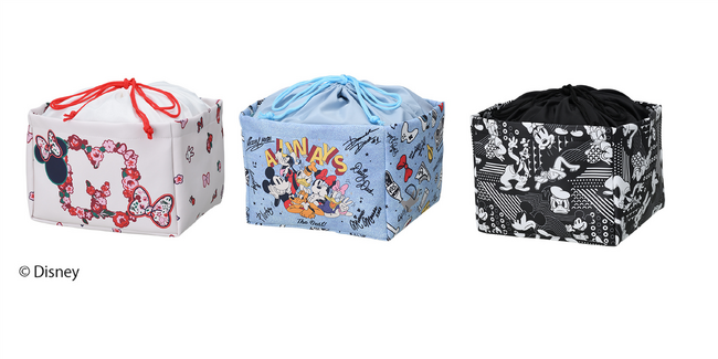 「ミッキー」たちがあしらわれた巾着バニティ。小物がたくさん収納できるサイズ。