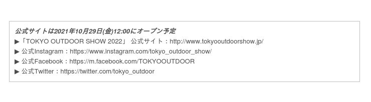 公式サイト:http://www.tokyooutdoorshow.jp/