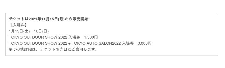 ??主催:TOKYO OUTDOOR SHOW 実行委員会
