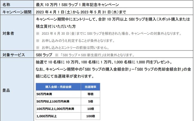 ■1周年を記念して「最大10万円!SBIラップ1周年記念キャンペーン」を実施!
