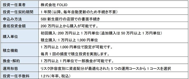 「SBIラップ」は、FOLIOが提供する投資一任サービスのシステムプラットフォーム「4RAP」を採用し、運用業者が持つノウハウを最大限に活かした質の高い運用サービスを、低コストで提供しています。2022年10月20日(木)からは対面チャネル向けに「SBIラップ×SBI新生銀行」を開始し、お客さまのニーズに寄り添ったコンサルティングと最先端の運用ノウハウを活かし、「リアル」と「デジタル」を組み合わせた投資一任サービスを提供することで、より幅広いお客さまの資産形成を積極的に支援しています。