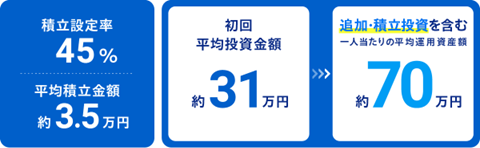 積立設定率は、運用資産残高がある口座数のうち2023年2月末時点において積立設定が行われている口座数の割合(小数第1位以下を切り捨て)。平均積立金額は、2023年2月末時点において積立設定が行われている積立金額(総額)を積立設定が行われている口座数で除算して算出(千円未満を切り捨て)。一人当たりの平均運用資産額は、2023年2月末時点の運用資産額(総額)を運用資産残高がある口座数で除算して算出(1万円未満を切り捨て)。