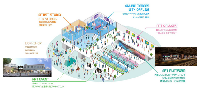 アーティスト活躍の場を拡大するため、制作・販売の拠点整備やJR東日本のリソースを活用した情報発信を行います。また、「アートによる文化創造」という面において、既に開発に着手している「TAKANAWA GATEWAY CITY」とも連携を図り、「都市文化力の向上」をアートの側面からけん引します。