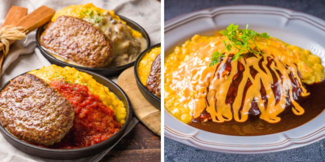 ハンバーグ専門店がっつりハンバーグのオープンと同時に『とろ〜り卵のオムライスハンバーグ』『至福のふわとろオムライス 伊太利亜亭』の2店舗もオープンしております。その日の気分に合わせてご利用ください。