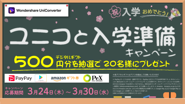 【デジタルギフトが当たる!】入学準備キャンペーン実施中|Wondershare UniConverter