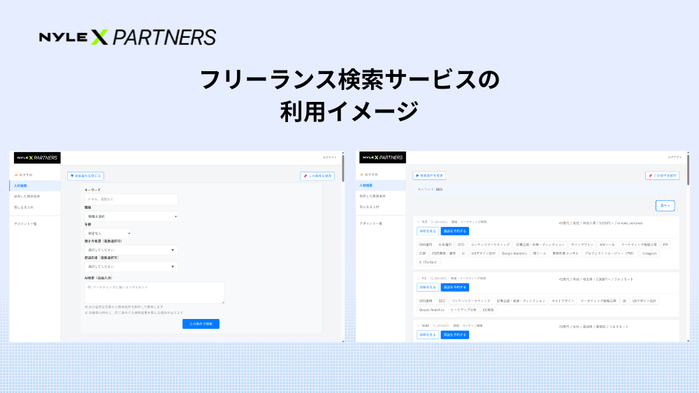 ナイルの人材支援サービス「Nyle X Partners」、厳選フリーランス人材検索サービスを公開