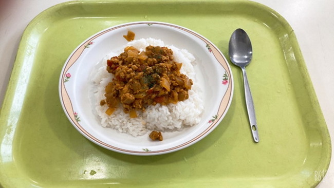 南インド風のキーマカレー! キーマカレーだから冷めてもおいしい(テイクアウトしてもおいしく食べられる)5種類のスパイスを使用し、普段の学食のカレーとは一味違った、おいしくヘルシーなカレーです