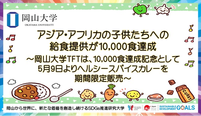 【岡山大学】アジア・アフリカの子供たちへの給食提供が10,000食達成 〜岡山大学TFTは、10,000食達成記念として5月9日よりヘルシースパイスカレーを期間限定販売