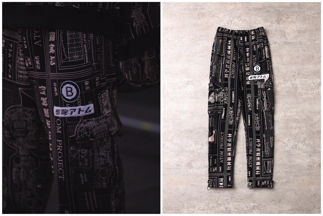 各所にBAITと鉄腕アトムのブランドロゴが配置され、スケマティックをテーマにアトムの設計図がすべてのアイテムにパッチワークされたデザインとなる。