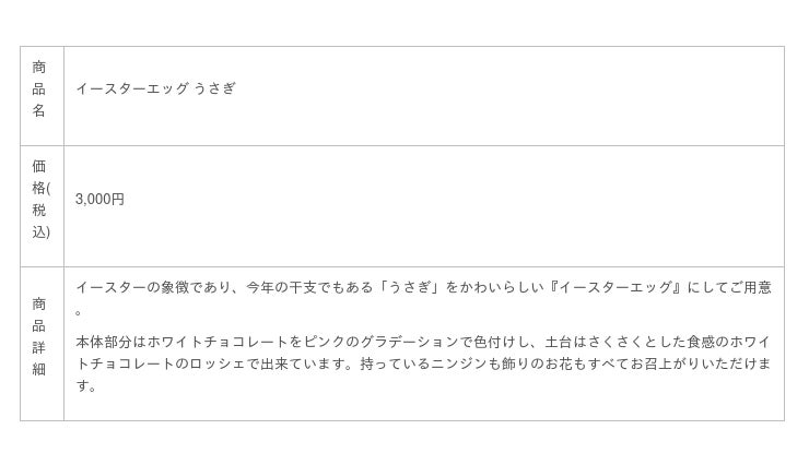 また、イースターにちなんだプチガトーも3月27日(月)より販売いたします。
