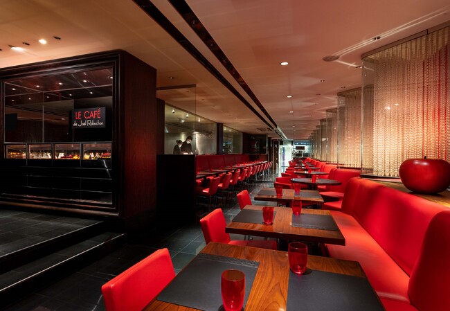2004年4月に東京・日本橋高島屋内にオープンし、ジョエル・ロブションの料理哲学はそのままに、カフェならではのガレットやサンドウィッチからコース料理まで幅広くご用意しています。赤と黒を基調としたシックなデザインの店内には11万個のスワロフスキーが輝いています。
