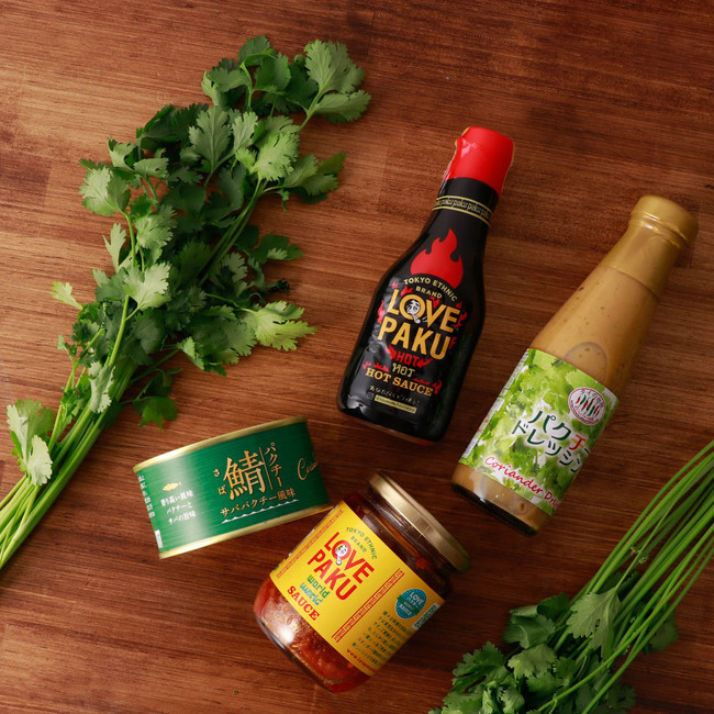 他にも限定のオリジナルトートバッグや、一口でエスニックな気分にさせてくれる調味料「LOVEPAKU」、フォーガーセットなどパクチーとあわせて食べたい食品の数々も展開します。