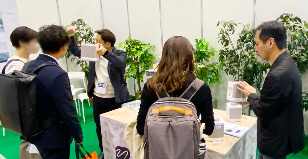 試聴体験コーナーでは6台の nemcaro(ネムカロ)実機をウッドテーブルの上に360度囲むように配置し、USBメモリーの音源4種( Soundscape / Forest / Spa / Ocean )を自由に試聴体験頂ける環境で、各種の音源を興味深く聴き比べるご来場者様の姿も見られました。[画像4: https://prcdn.freetls.fastly.net/release_image/68516/663/68516-663-6d44ec657dfb8a50fda8acfd4fb18ee3-1000x517.jpg?width=536&quality=85%2C75&format=jpeg&auto=webp&fit=bounds&bg-color=fff ]