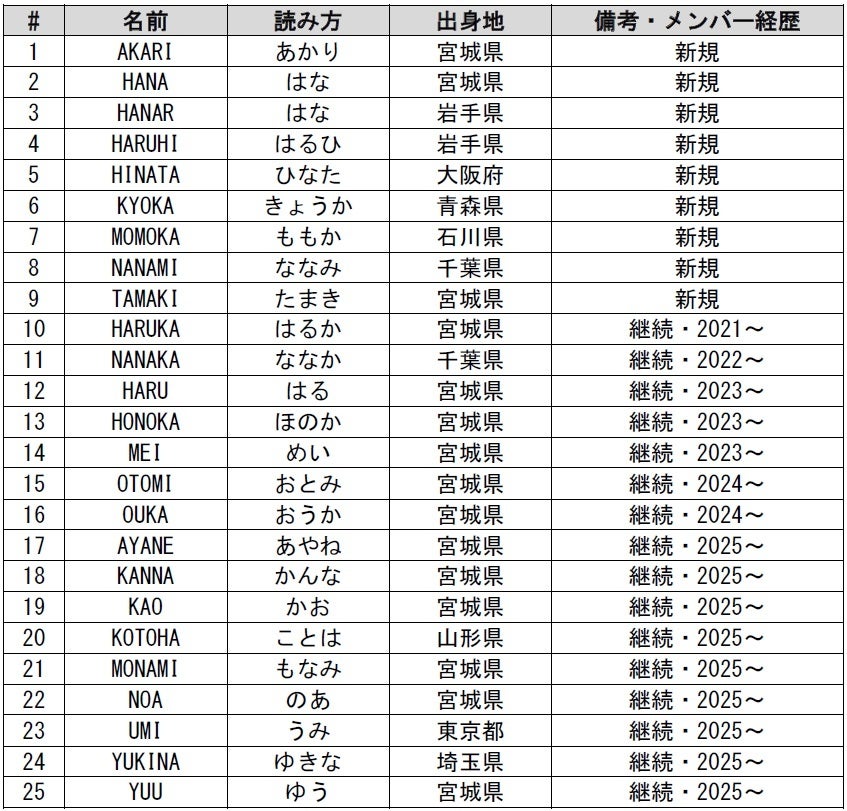 <東北ゴールデンエンジェルス 2026メンバー 概要>