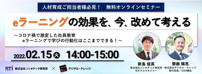 導入実績2000超を誇るeラーニング専門ソリューション企業、株式会社デジタル・ナレッジ(本社:東京都台東区、代表取締役社長:はが弘明)は、経営・組織課題の解決を支援する株式会社ソシオテック研究所様(本社:東京都千代田区、代表取締役:廣川真一)との共催セミナーを2022年2月15日に開催いたします。