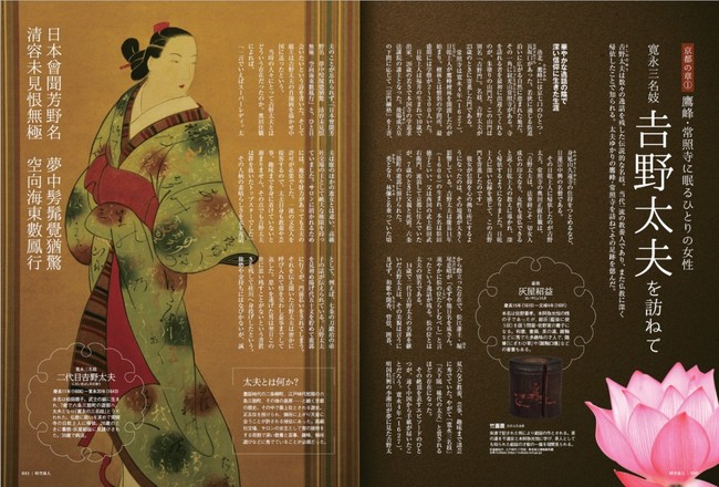 また、京都・島原にただ一軒残る置屋「輪違屋」と如月太夫への貴重な取材も掲載している。