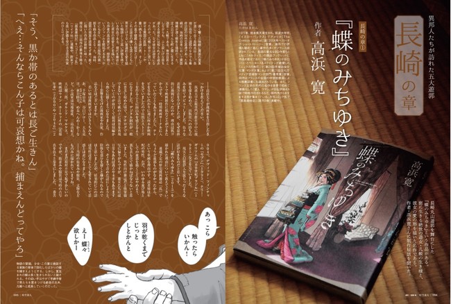 長崎丸山遊郭を舞台にした『蝶のみちゆき』を紹介する長崎の章。廓に生きる絶世の遊女・几帳の生き様と、彼女の愛の形を描いた名作である。作者・高浜寛さんに制作秘話を聞いた。