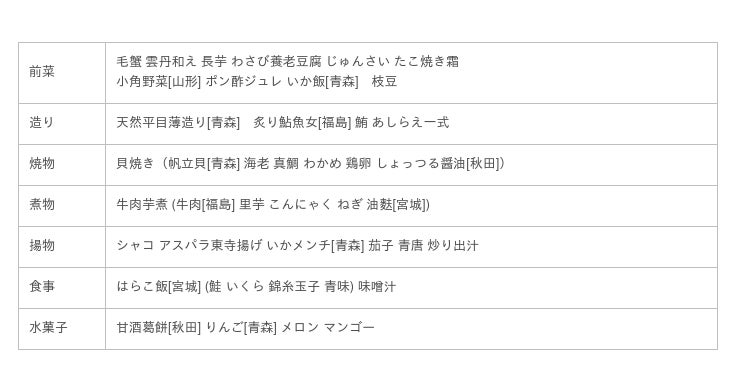 東北・秋田新幹線コース 日本料理 メニュー例(※9月のメニュー例)