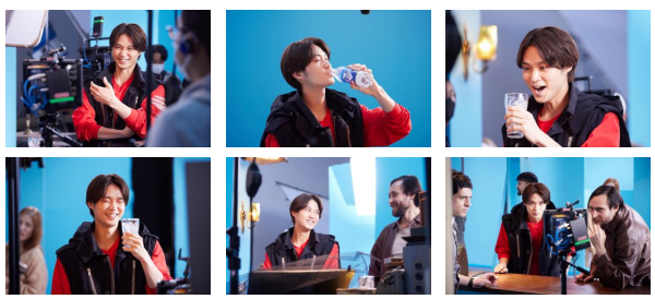 CM撮影中の印象に残ったシーンについて、「“ごくごく、プハーッ”っていうのをやりたかった!念願を実現させてもらって、すごく嬉しかったです」とコメントするほど、今回の撮影は気合が入っていたという磯村さん。一方、炭酸を一気に飲むシーンではあまりの“速攻!強炭酸水”ぶりに驚きを隠せなかったり、「炭酸はやっ!」のセリフでは、あまりの声の大きさに、「ちょっとでかすぎたかな・・・」とつぶやき、現場が笑いに包まれる一幕も。そんな中、次々に表情や声のトーンを変え、炭酸の刺激を表現する磯村さんの演技力の高さ、そして演技へのこだわりやサービス精神の旺盛さが垣間見られた撮影となりました。