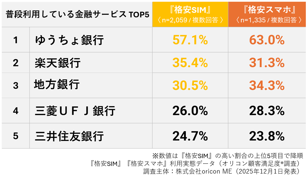 『格安SIM』『格安スマホ』普段利用している金融サービス TOP5