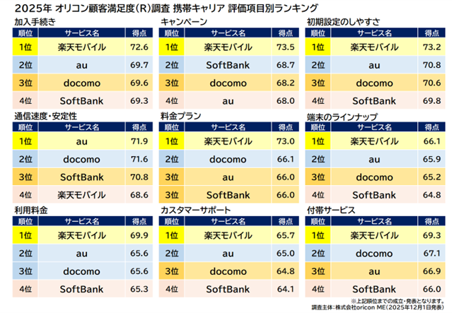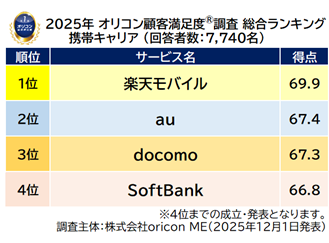 2025年 オリコン顧客満足度(R)調査 携帯キャリア (https://life.oricon.co.jp/rank-mobile-carrier/)