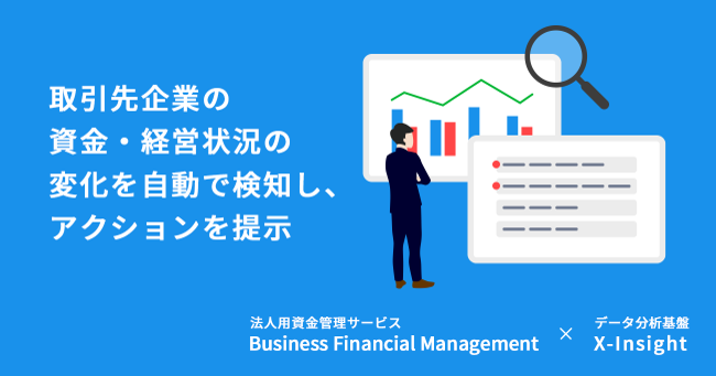 株式会社マネーフォワードは、法人用資金管理サービス『Business Financial Management』にデータ分析基盤「X-Insight」を搭載し、本日より、金融機関向けに「インサイト機能」の提供を開始しました。
