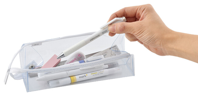 今回、従来のペンケース<C2>の特長はそのままに、トレンドのクリアタイプがラインアップに加わります。透明のため中身が見やすく、目的の文具をより探しやすくなりました。一部店舗でテスト販売を行ったところ、購入者からは「中身が見やすく取り出しやすいうえに、シンプルなデザインが素敵」といった声も聞こえ、良い反響をいただいています。