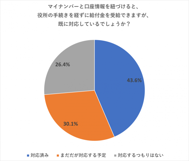 まだその対応ができていない方は約55%ほどいて、そのうち約25%はマイナンバーと口座情報の紐づけを行わないと回答しています。