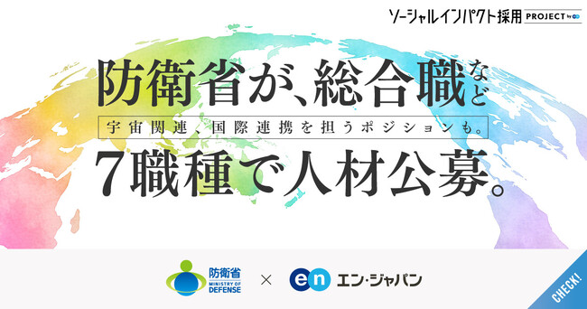 エン・ジャパン株式会社(本社:東京都新宿区、代表取締役社長:鈴木孝二)は、2023年8月7日(月)より、防衛省の『ソーシャルインパクト採用プロジェクト』を開始。当社が運営する採用支援サービスを通じ、7職種を一斉公募します。下記、本プロジェクト概要と、防衛省のコメントを紹介します。