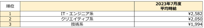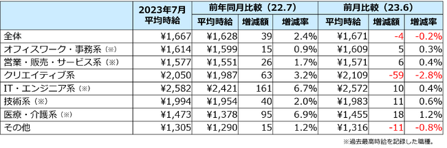 7月度の三大都市圏職種別平均時給は、5職種で過去最高時給を記録。