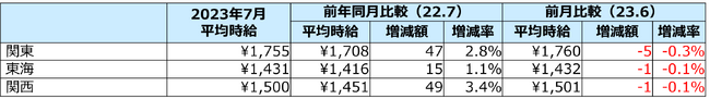 7月度のエリア別平均時給は、全エリアで前年同月比プラスを記録。