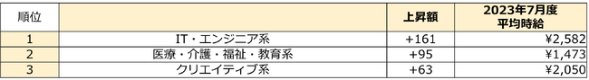 7月度の職種別/前年同月比 時給上昇額ランキング