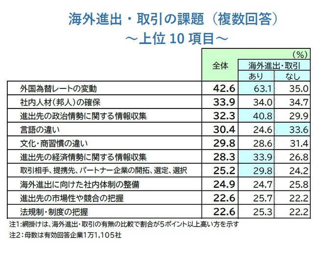 2023年、企業の28.1%が海外ビジネスを推進 海外進出や取り引きを行う上での課題「外国為替レートの変動」がトップに