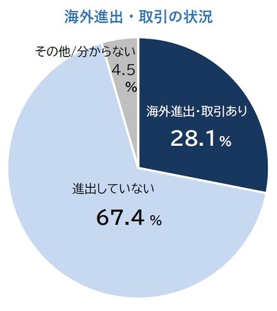「直接・間接のいずれかの形で海外進出・取引をしている」企業(28.1%)はおよそ3割となる一方で、「進出していない」企業は67.4%だった。