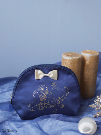 トートバッグとポーチは、夜空をイメージしたネイビー生地に、キャラクター達を煌びやかなゴールドの箔プリントで施しました。バッグは「アーシャ」と空から舞い降りた「スター」を、ポーチには無邪気な表情が可愛らしい「ヴァレンティノ」と「スター」をプリント。バッグのフリルハンドルとポーチに添えたリボンもゴールドで統一し、上品な印象に仕上げました。