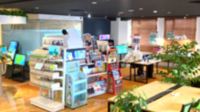 このような背景から、実際の売場でどのように販促プロモーションが行われているのかをご覧いただけるよう、渋谷本社オフィスのミニショールームをリニューアルいたしました。疑似売場を構築し、実際に売場で使用されている販促ツールに触れながら施策を考えることができ、「SDGs販促」の世界観を表現した体感型ミニショールームです。900mmゴンドラに商品、サイネージ、POPなどを設置し、実際の売場を再現するとともに、オンラインサイネージのデモ配信やセンサーを活用した製品など、様々な製品や事例を取り揃えて展示しております。