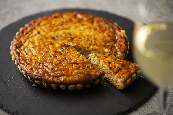 甘みが出るまでじっくりソテした玉ねぎと、ベーコン、グリエールチーズ、卵を混ぜ合わせ、タルト生地に流し込んで焼き上げました。オーヴントースターで温めても、冷蔵庫で冷やしても美味しくお召し上がりいただけます。