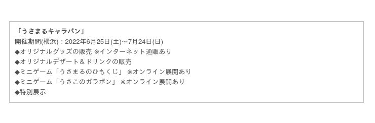 「うさまるキャラバン」特設サイト https://event.bandainamco-am.co.jp/cx/usamaru
