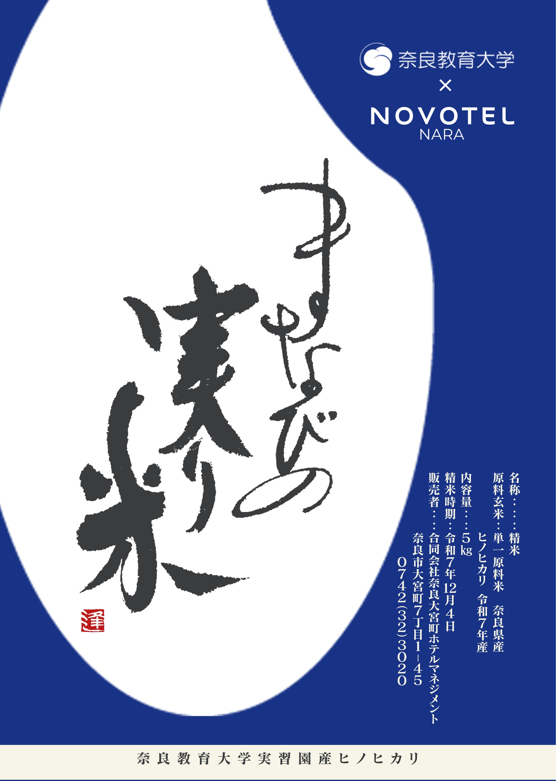 この度、合同会社奈良大宮町ホテルマネジメント(以下、ノボテル奈良。所在地:奈良市大宮町7丁目1番45号、総支配人:戒田 真)は、令和7年12月3日に開業1周年を記念し、国立大学法人 奈良国立大学機構 奈良教育大学(以下、奈良教育大学。所在地:奈良市高畑町、学長:宮下俊也)と連携した米「なっきょん×ノボテル奈良 まなびの実り米」(奈良教育大学実習園産ヒノヒカリ)付きふるさと納税宿泊プラン、およびお米のみの購入プランを奈良市ふるさと納税返礼品として受付開始いたしました。併せて開催した記者発表会は、おかげさまで盛況のうちに終了しましたことをご報告申し上げます。