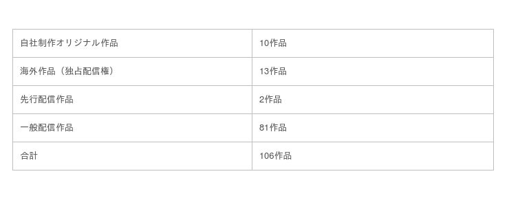 正式サービス開始時のラインナップ内訳は下記の通りです。