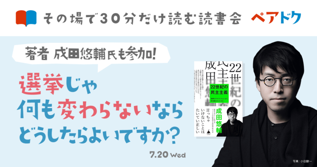 -7月の新刊『22世紀の民主主義』著者 成田悠輔氏も参加!オンライン読書会「ペアドク」2022年7月20日(水)実施-