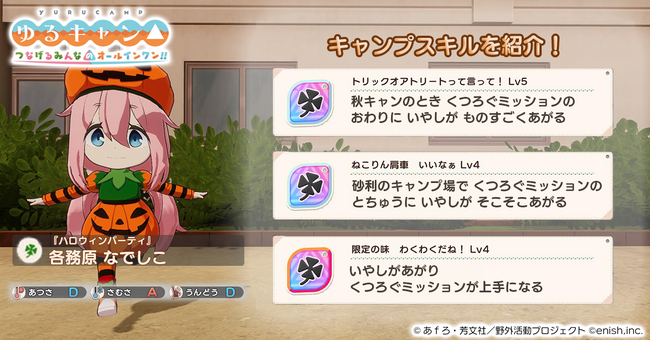 TVアニメ『ゆるキャン△』初のオンラインゲーム、「ゆるキャン△ つなげるみんなのオールインワン!!」新イベント「みんな集まれ! ハロウィンパーティーの招待状」開催!