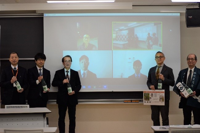 当日は大学関係者、今代司酒造株式会社関係者、胎内市関係者、報道関係者等20名程度の方々にご参加いただき、取り組みの経緯や商品説明等を発表いたしました。