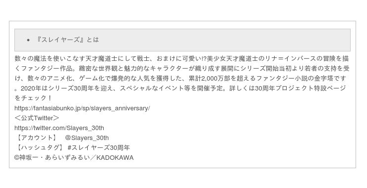 本コラボには、ライトノベルの金字塔とも言われる『スレイヤーズ』や今年でシリーズ生誕25周年を迎え、2020年にはアニメ化が予定されている『魔術士オーフェンはぐれ旅』、2018年にアニメシリーズ第4弾も放送され今も根強いファンを持つ『フルメタル・パニック!』がラインナップ。